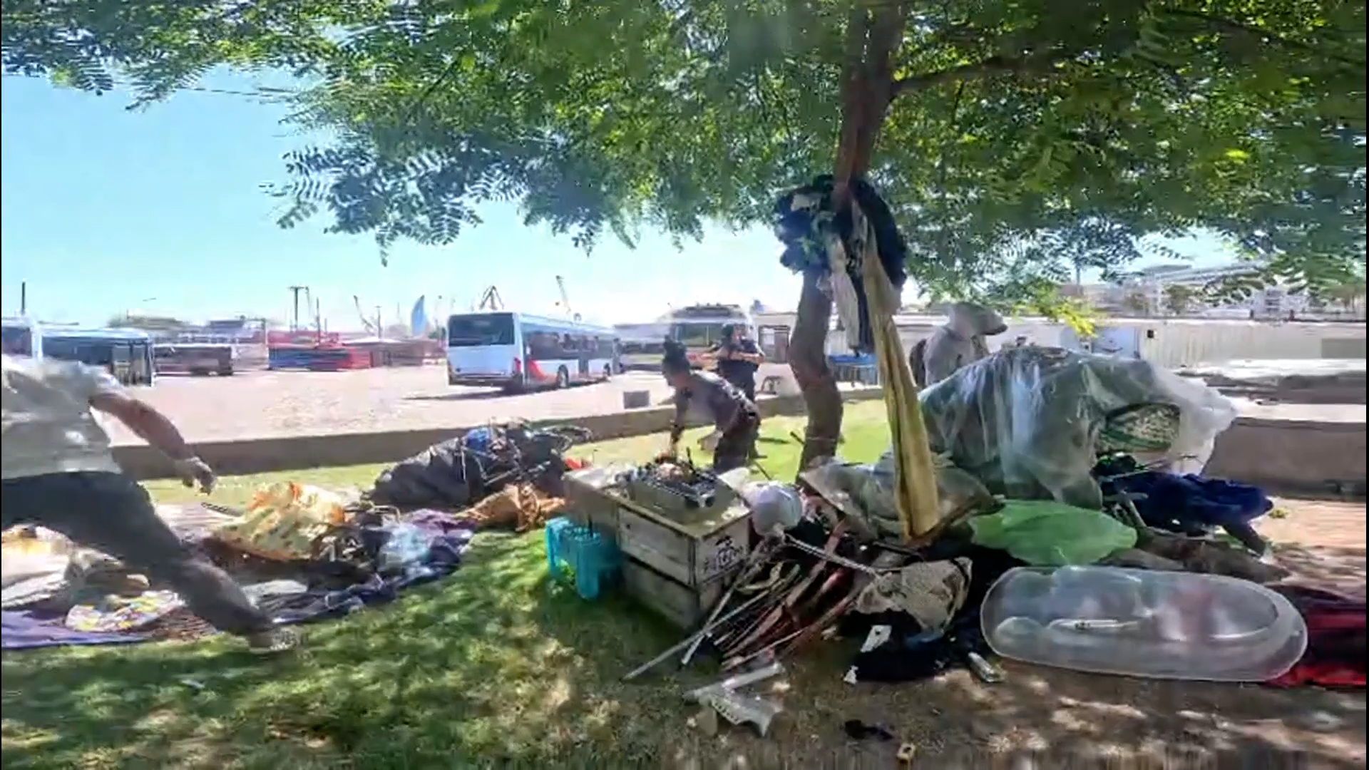 La operación no solo involucra a las personas. Como parte del procedimiento, se retiran del espacio público enseres, colchones y materiales de acampada, considerados residuos. En seis días, esta recolección sumó 9.150 kilogramos (más de nueve toneladas), que son depositados en la usina de Felipe Cardoso.