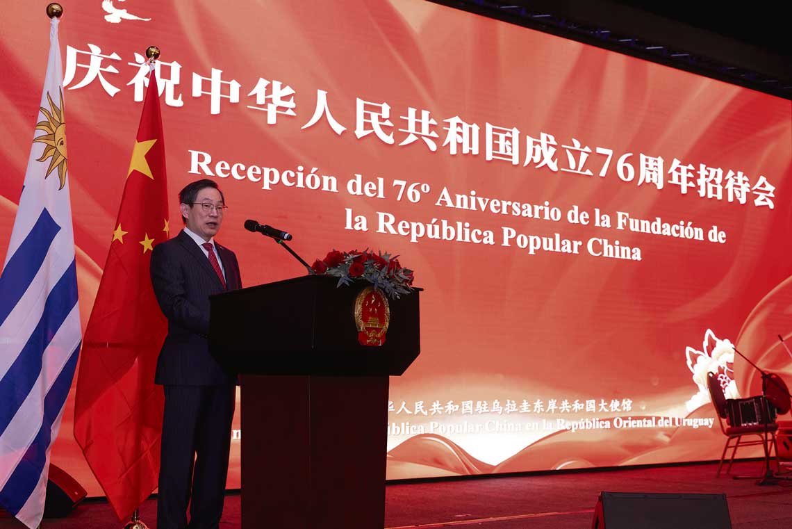 El salón elegido para la celebración estaba colmado. Autoridades del gobierno uruguayo, representantes del cuerpo diplomático, empresarios, académicos y miembros de la comunidad china en el país se dieron cita para conmemorar un hito: el 76º aniversario de la fundación de la República Popular China. Banderas rojas y doradas decoraban el espacio, junto a imágenes que evocaban el largo recorrido de modernización de la nación asiática. El ambiente tenía algo solemne, pero también festivo: no era solo un recordatorio histórico, sino una demostración de amistad bilateral.