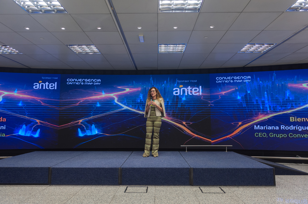 Mariana Rodríguez, CEO del Grupo Convergencia, fue la encargada de abrir la jornada y agradeció a Antel por ser “sponsor y anfitrión en esta edición del Carriers Map Day”, destacando la relevancia de Uruguay como punto de encuentro para la industria tecnológica.