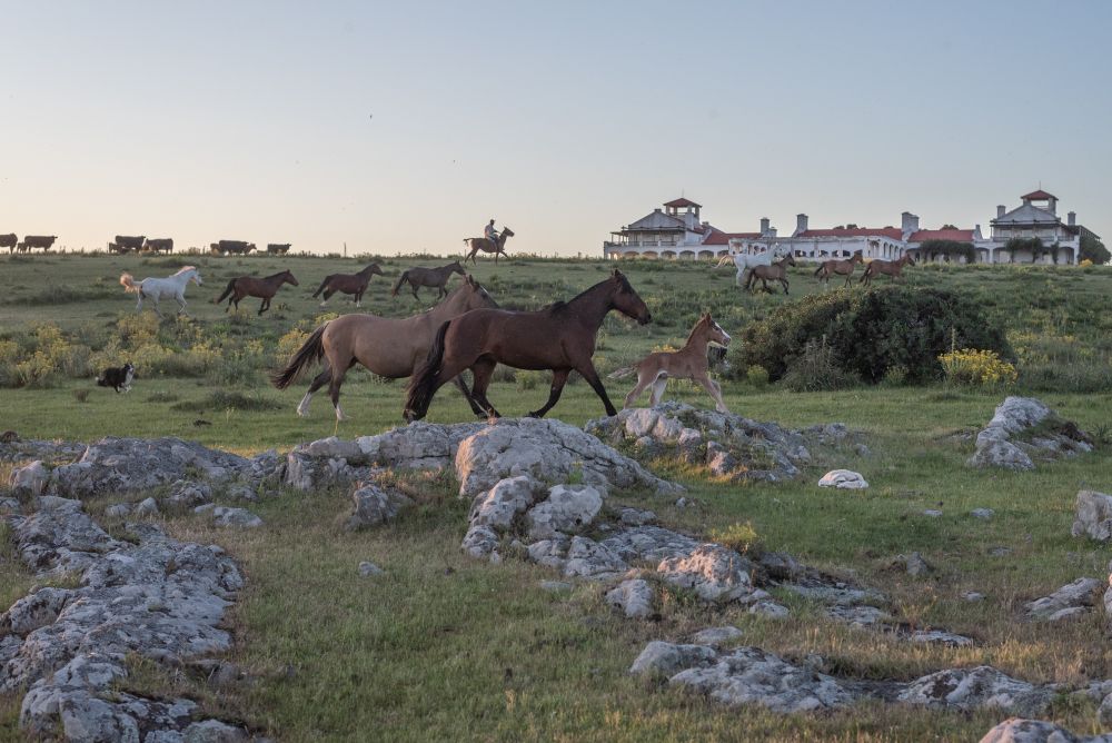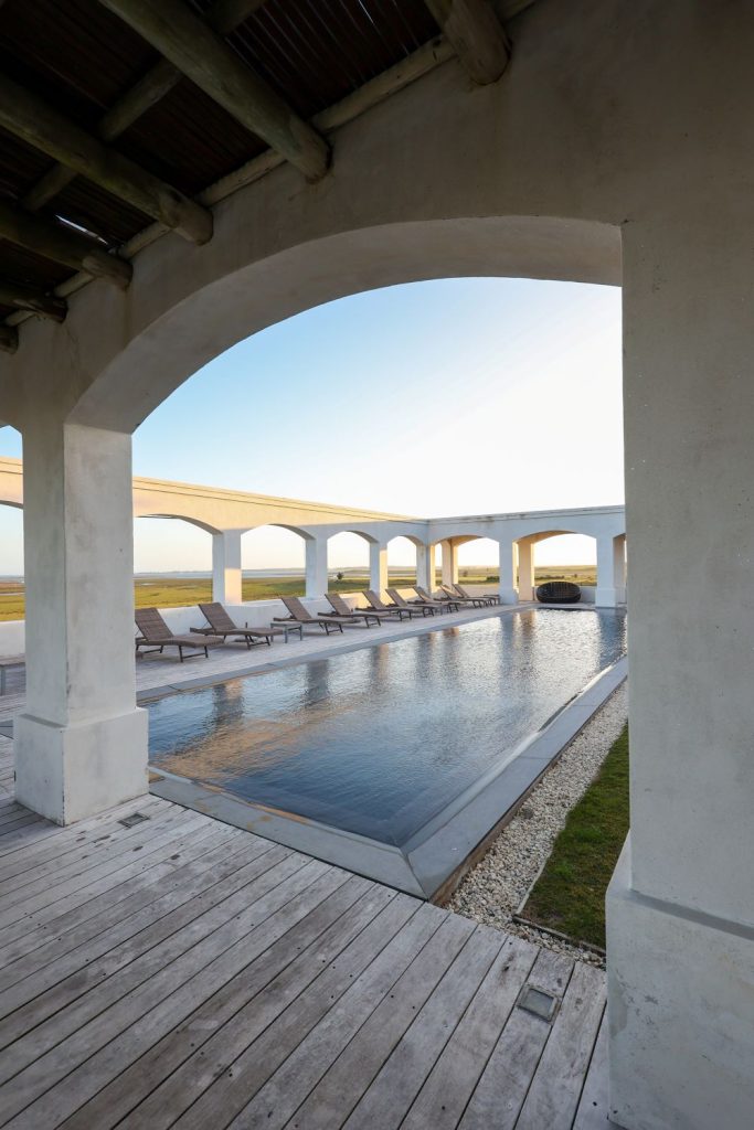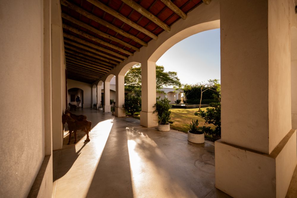 Rodeada de vistas abiertas, con muros blancos de adobe, techos de chapa roja y patios amplios que evocan las estancias tradicionales, la propiedad diseñada por el arquitecto Marcelo Daglio logra un equilibrio entre la elegancia y la esencia rural uruguaya. A esto se suma una huerta orgánica, una piscina de piedra Absolute Nero y una propuesta estética que celebra la identidad del país a través del arte y la arquitectura.